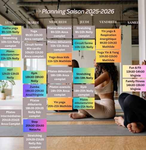 Planning des cours pour la rentrée de Septembre 2025-2026